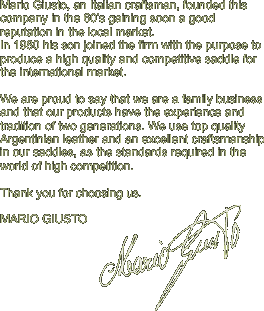 Sales Order Form Contact us Saddle Construction HomeUsers Worldwide Accesorios Monturas de Carrera y Vareo Monturas de PoloMonturas de Salto Email Ciase Versión en Español